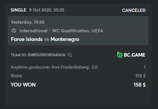 Ticket ID: 2588152390385545626 So I was watching this game and thought to place a bet on Arni Frederiksberg to score as it looked clear that more goals were going to be scored in the game. As you can see, i placed the bet when it was 2-0 and he scored the 4th goal. I open bc game to collect my winnings and to my surprise the bet for some reason has been cancelled and voided. I have now been on livechat for 5 days trying to get this resolved, yet they are saying the same issue they are 'looking at it' 'working urgently', yet they then said today i had to create a new ticket as it got messed up. They clearly are trying to get out of paying me and I am doing this to spread awareness, or maybe the team can rectify this mistake and settle the bet correctly. The livechat agent assured me to check in after 24 hours and it would be sorted yet nothing. Please help me out as this money is very much needed, especially after the crypto crash on Friday.