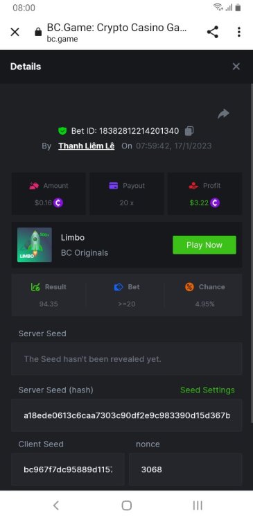 12. https://bc.game/#/sd/10YMMNGY7FV47N Id bet 18382812214201013 https://bc.game/#/sd/10YMMWB4AC4R9V Id bet 27013003534663980