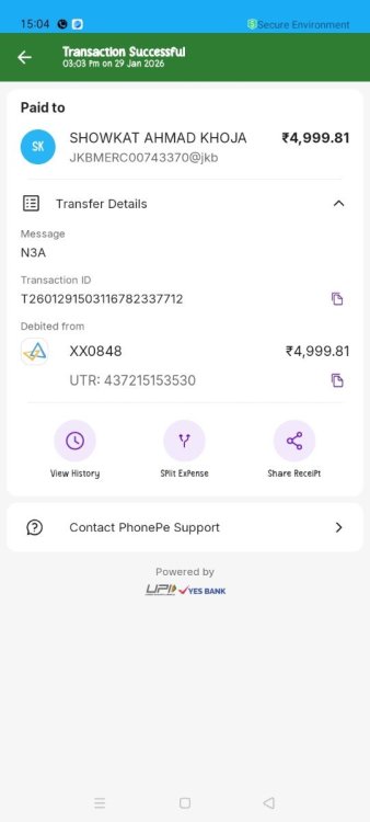 2. Username : Royal2809 User id:71653609 Registered Email: [email protected] Issue Type: Deposit credited 0 INR but amount deducted Order ID: F-1855643118549083079 Transaction ID (Txid): P_260...7nEAE Order Amount: 5000 INR Credited Amount: 0 INR Status: Processing (from long time) Date & Time: 29/01/2026 at 03:03:02 PM Problem Description: I made a deposit of 5000 INR on BC.Game. The order status is still showing “Processing”, but the credited amount is 0 INR. The amount has been deducted successfully from my side, however it has not been credited to my BC.Game wallet. This is causing financial loss and inconvenience to me. What I Want: I request BC.Game team to either: 1) Credit the full amount of 5000 INR to my account, OR 2) Refund the deducted amount immediately. Proof: I have attached screenshots of the transaction details, order status, and payment confirmation.