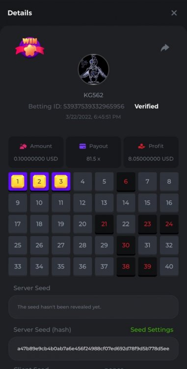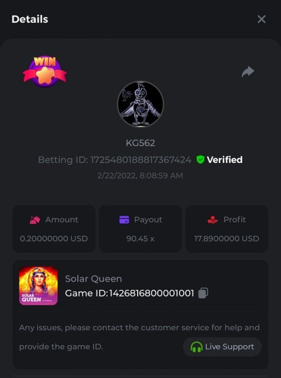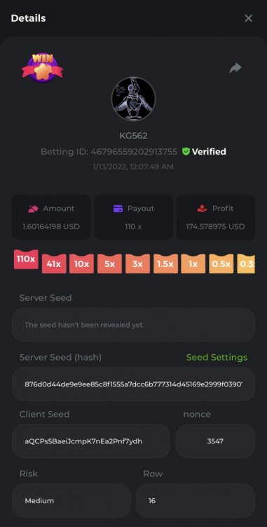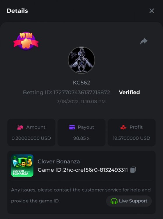 18. 110x BOUNTY CHALLENGE Betting ID: 46796559202913755 114x CONSECUTIVE BETS Betting ID: 47834407985222214 Betting ID: 47834407985222215 Betting ID: 47834407985222216 Betting ID: 47834407985222217