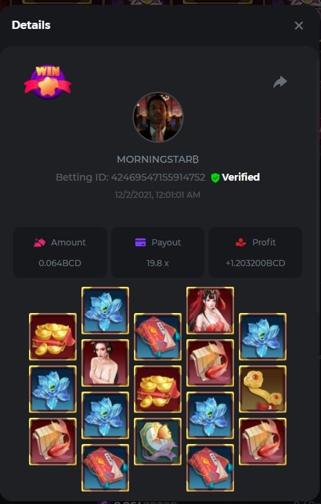 EGYPTIAN Betting ID: 48839232763988572 939.4x SWORD Betting ID: 49024753876336873 102x ORIENTAL BEAUTIES Betting ID: 49040804169121841 70x -