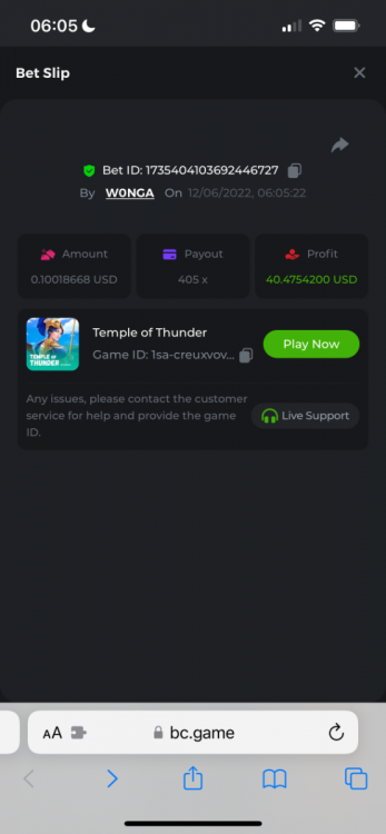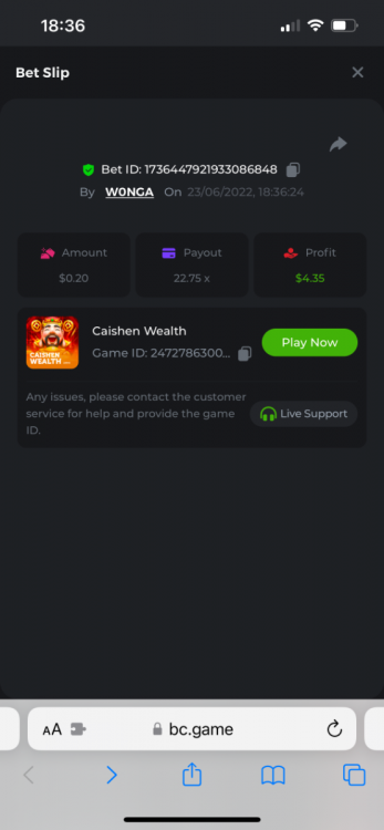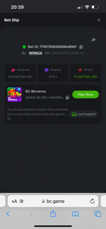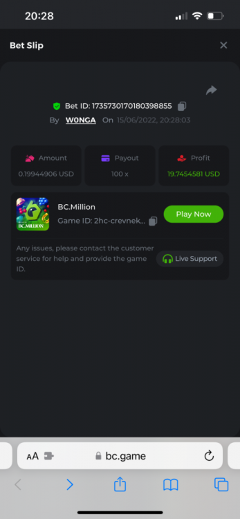 I just need to get this message out there as I can’t reply to the past contest which was closed. I feel that how the outcome was calculated was not accurate. The bounty was to hit 51x exact. However many still claimed the prize for getting 51.4 or 51.2 for example. I do realise that there was a case where one got 51.0008x or so which is valid. But the others in my opinion should have been voided. Ultimately it’s down to bc to decide, but for me it’s a big deterrent to continue playing, pausing, screenshot , copying bet links and updating the forum by navigating through pages of posts as well as waiting a week to claim a prize. I would love to see some investment in such competitions to automate this. Get a public leaderboard on your homepage. It will attract more users. One last suggestion, create a poll and let the ‘community’ decide on the slot providers. -