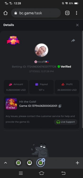1. username-nicaharina 2. https://www.instagram.com/p/CcPAph5pe_A/ 3. twitter- @MSADnica 4. twitter- @MSADnica 5. Username-Nica Harina 6. cave-https://bc.game/sd/?sd=10I9VPC8ACTIJ7 7. sportsbet 2125475622963785799 9.Get a minimum 30x multi on Gamomat Ramses Book Easter Egg slot. - https://bc.game/sd/?sd=10I9WWHQ3H3SB7 10. 2fa is already active Medium 1. easter egg https://bc.game/sd/?sd=10I9YGHQRCD82B 2.Roulette 36x https://bc.game/sd/?sd=10I9X9VZRE1SSZ 5. sports $1 2x odds 2125536670026698775 9. blackjack https://bc.game/sd/?sd=10IA76ZR9Y4VF7 HARD Wheel https://bc.game/sd/?sd=10IA8EB8W232TV -