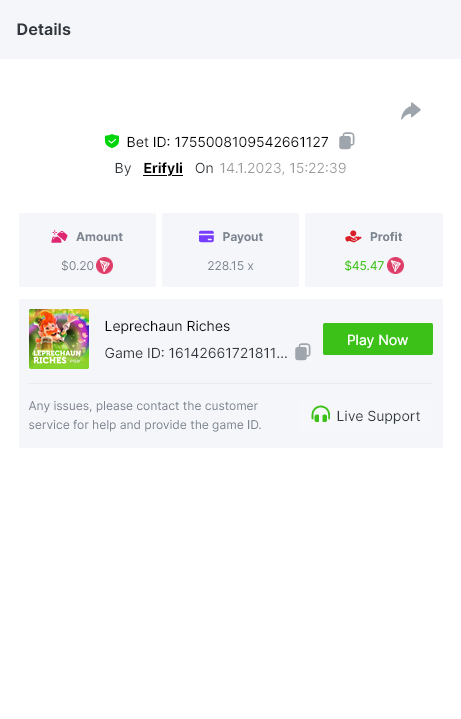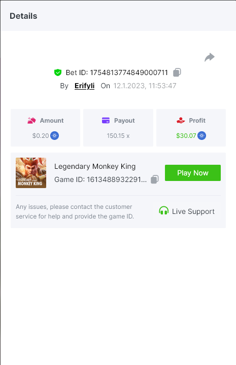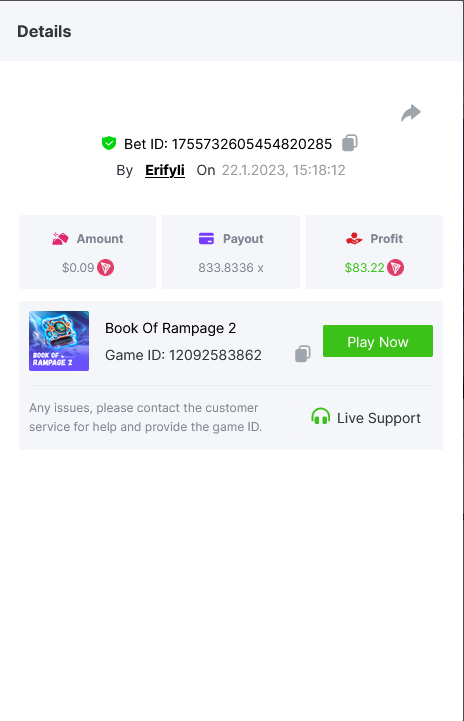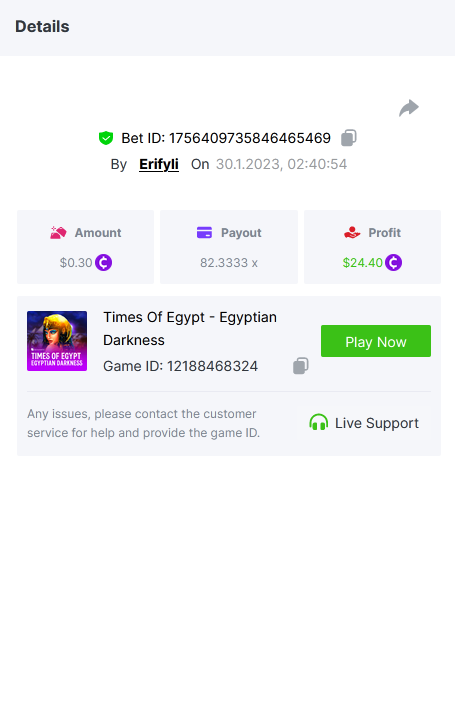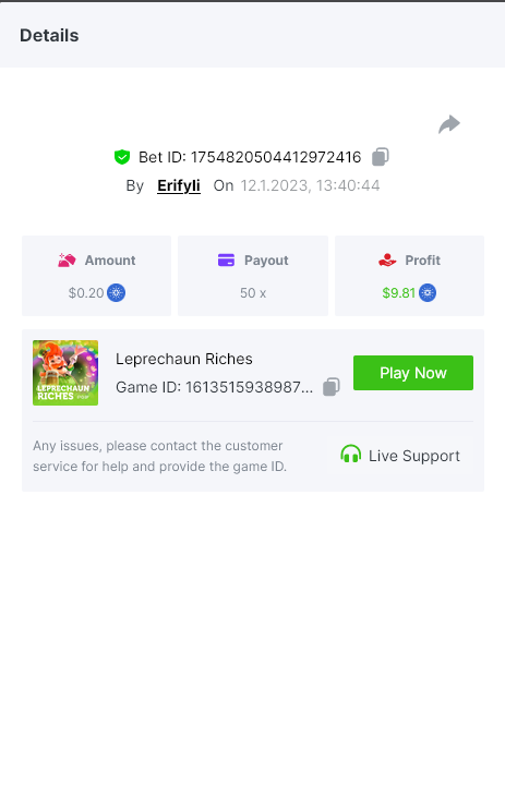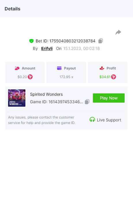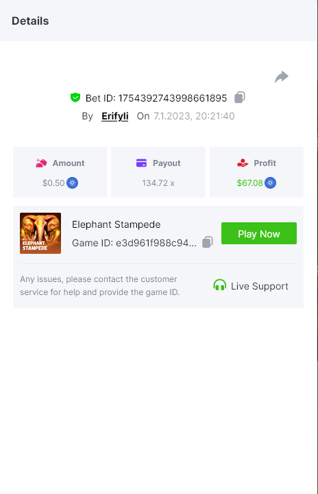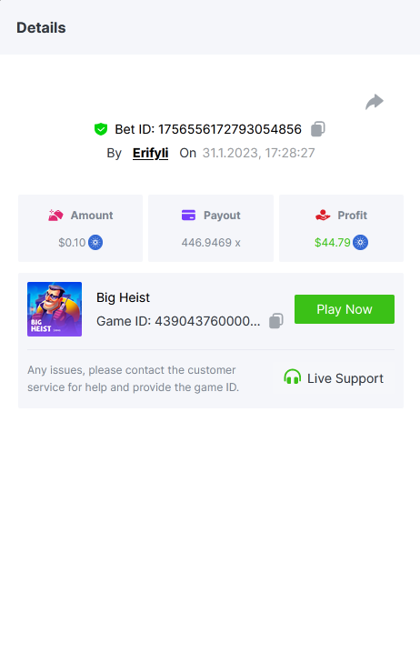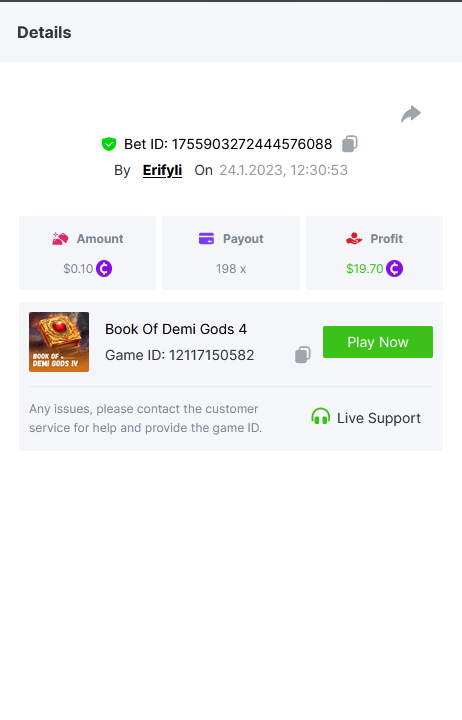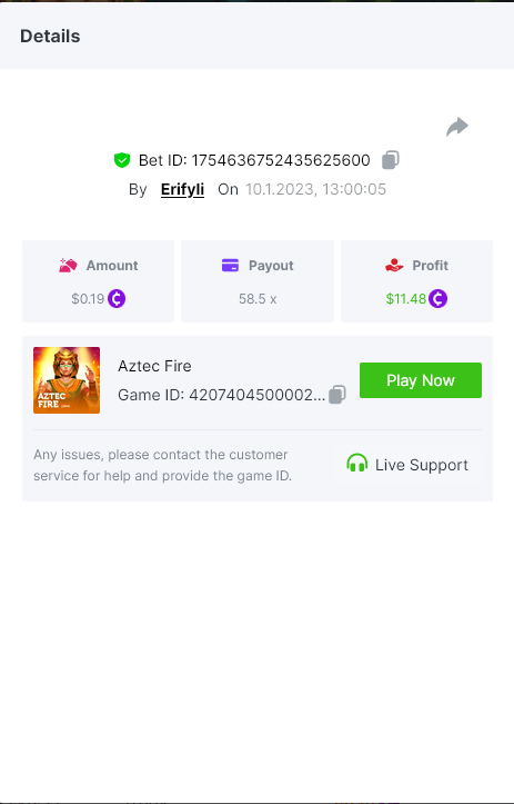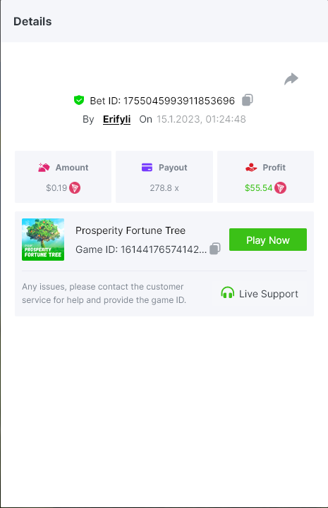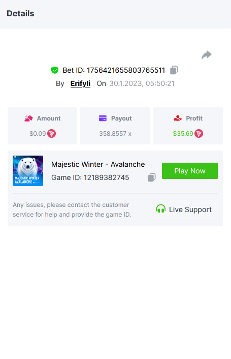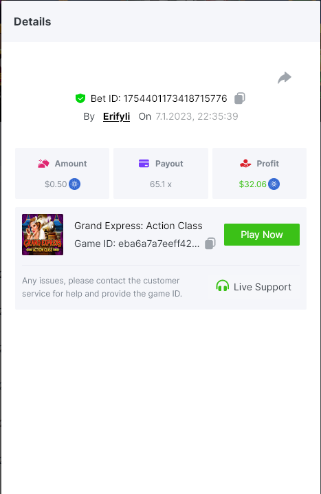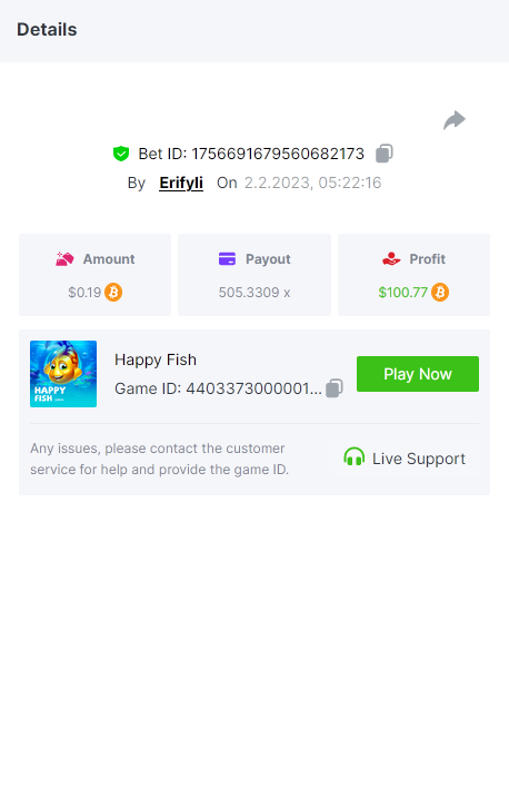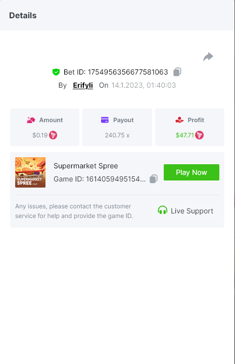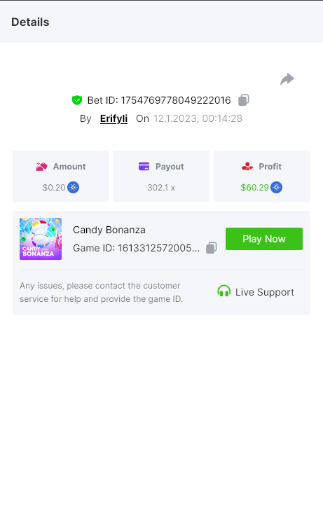 Bounty ? https://bc.game/#/sd/1123A7FXI98S9F The exact amount paid in the game was 50x but the multi shown is 0.05 higher than in reality. Not sure if this counts as bounty. https://bc.game/#/sd/1123L1X3SF7YTV https://bc.game/#/sd/111XF58ISYZR4J https://bc.game/#/sd/111X8MPZ776SYB https://bc.game/#/sd/111XAGX5V8YMMR https://bc.game/#/sd/1121WOEHI0AT5F https://bc.game/#/sd/111XKLL6U67THV