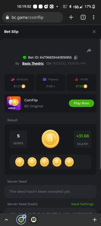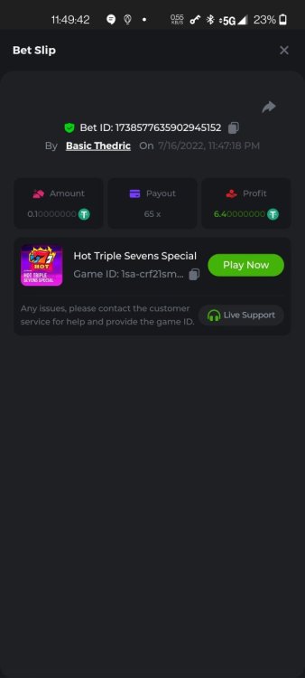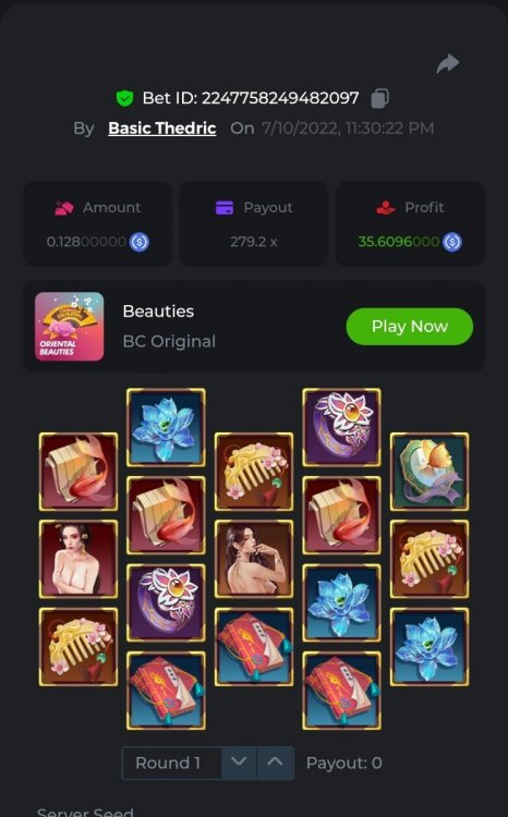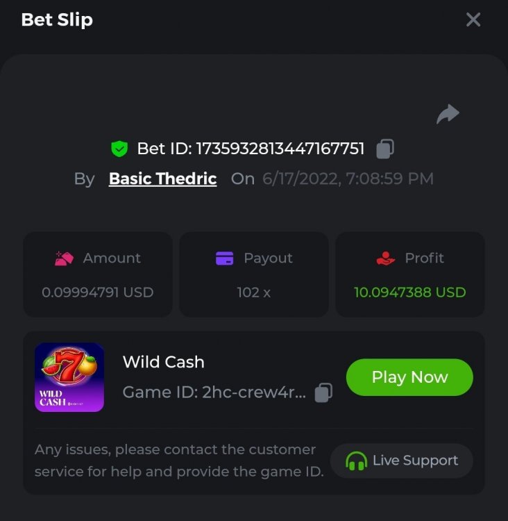 Multiplier: 100X Bet: $0.4096 Bounty: Yes Glad this didn't take too long. I'm not a fan of this game. IMO the bounty is silly for this one. Too easy. As can be seen by how many ppl on page 1 alone got it. Just my $.02 https://bc.game/sd/?sd=10TEPGQMJ45HCJ And the bounty https://bc.game/sd/?sd=10TEOAK0JLFOCZ -