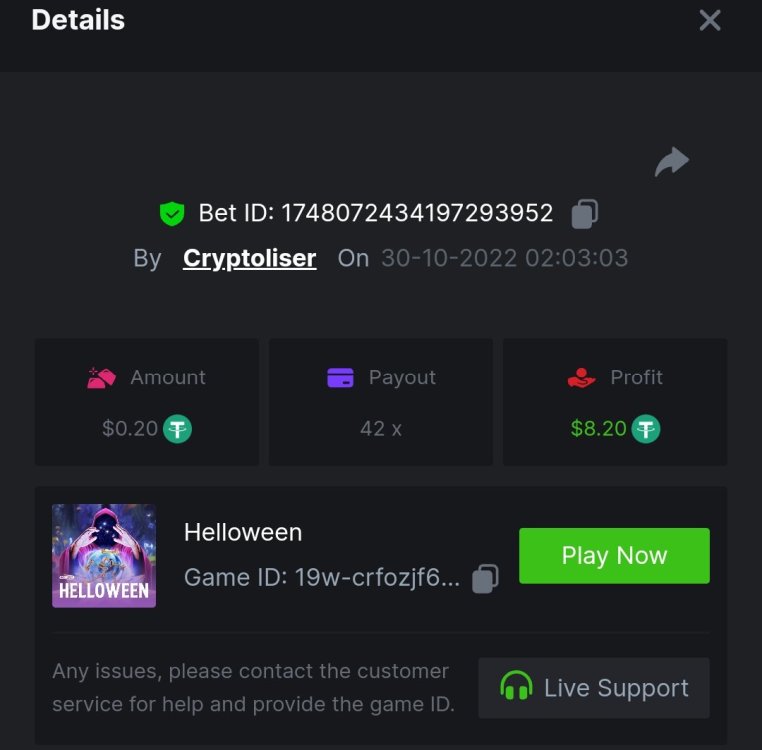 6. Undead Fortune https://bc.game/#/sd/10W3MVWMXAXLOZ Helloween https://bc.game/#/sd/10W3Q7MEB8GUMR Lucky Halloween https://bc.game/#/sd/10VWCXGGBW2P03 Halloween Jack https://bc.game/#/sd/10VXRQV5YTG4CZ Book of Pumpkin https://bc.game/#/sd/10W013FRGNUBRN Zombie Carnival https://bc.game/#/sd/10VTJK3T05SXLF Zombie Circus https://bc.game/#/sd/10W3UMDW8QCOWJ Fat Drac https://bc.game/#/sd/10VXVSC95UIRKJ Night Of The Living Tales https://bc.game/#/sd/10VW3MY7PN302B Wolf Night https://bc.game/#/sd/10W3WE2CRZQQDV Mr. Hallow-Win (+personal closest to bounty) https://bc.game/#/sd/10VWR0W2IJZKLV Voodoo https://bc.game/#/sd/10VXPCT0WSQEXF Tombstone R.I.P. https://bc.game/#/sd/10VVEYVC1IKX03 Guises of Dracula https://bc.game/#/sd/10VW4R4EU06EJ7