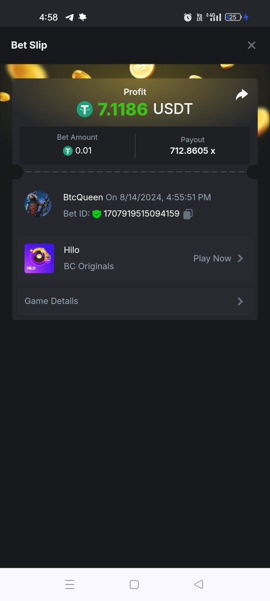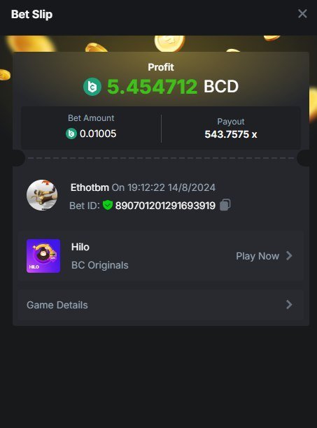 Moderator Giandreas Posted August 14, 2024 Moderator Share Posted August 14, 2024 Read Carefully Before Start To Hunt Forum Daily Challenges #683Hunt : HiLo Win the highest pay out Min Payout : 20 Min Level 10️Duration Starting : Now End time : 23.59 UTC Time How to Join? Make screenshot + paste your bet link + UID or Profile link Any coin, with min bet 0.01 USD is allowed (jb/bb/bcl not allowed)Reward Prizes 1st Place.....$7 BCD 2nd Place.....$5 BCD 3rd Place.....$4 BCD 4th Place.....$3 BCD 5th Place.....$2 BCD 🏵 Winners will be announcing next day after Roll Point! 2 Link to comment Share on other sites More sharing options...