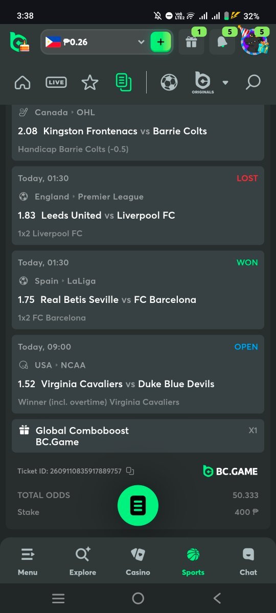GG29 Posted 3 hours ago Share Posted 3 hours ago Someone to explain why my parlay lost? Liverpool lead 2-0 on this match and i expecting a win on this promo but the end im dissapointed. @Mat sir can you check this @BC ASSIST Link to comment Share on other sites More sharing options...